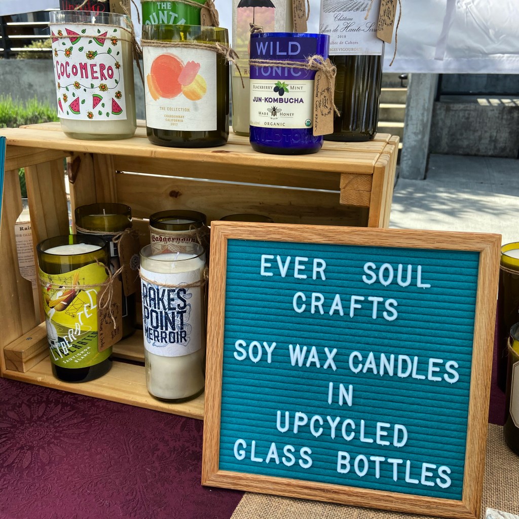 Ever Soul Crafts handmakes 100% soy wax candles in locally-drank wine bottles. Enjoy these deliciously scented candles & celebrate the beauty of upcycling.