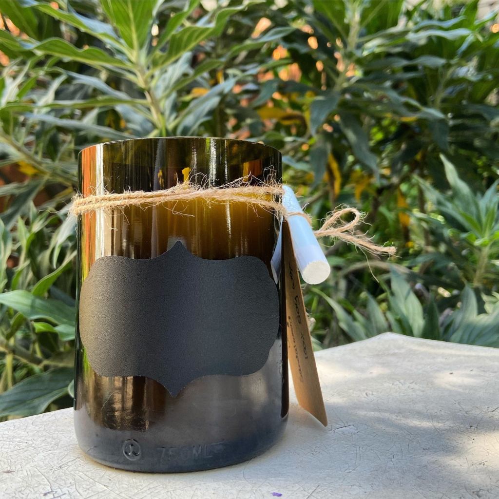 Candles in a variety of wine, beer, and soda glass bottles. Available with original label, chalkboard label, or naked. Accepting custom orders too!